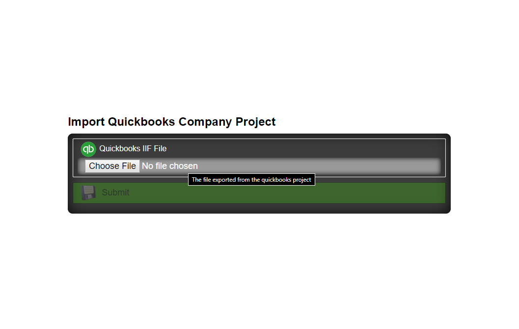 You can then select the imported Quick Books Project from the Project Selection drop down menu.