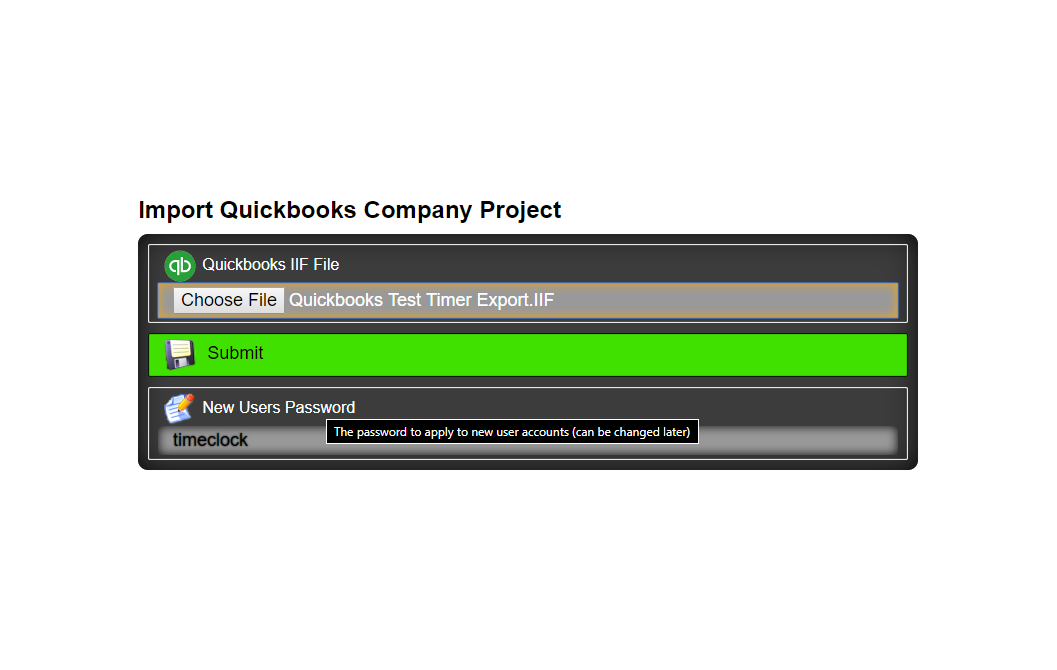 If left empty the password will be 'timeclock'. Users can change their password later.